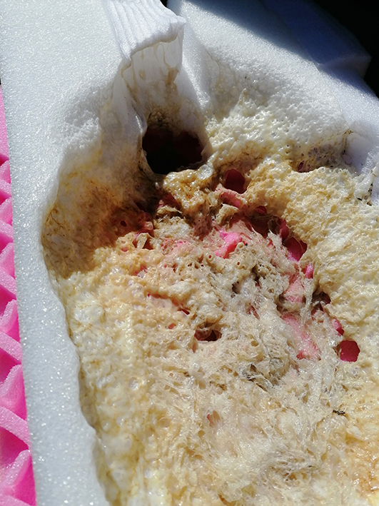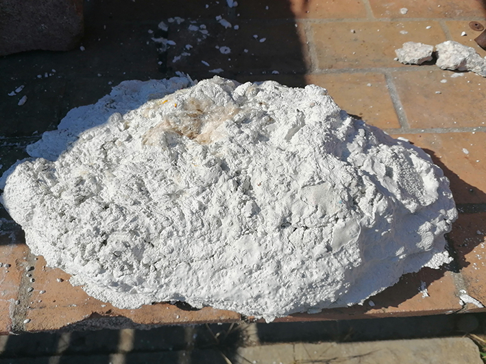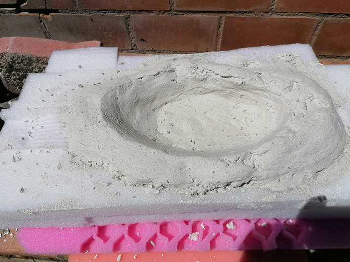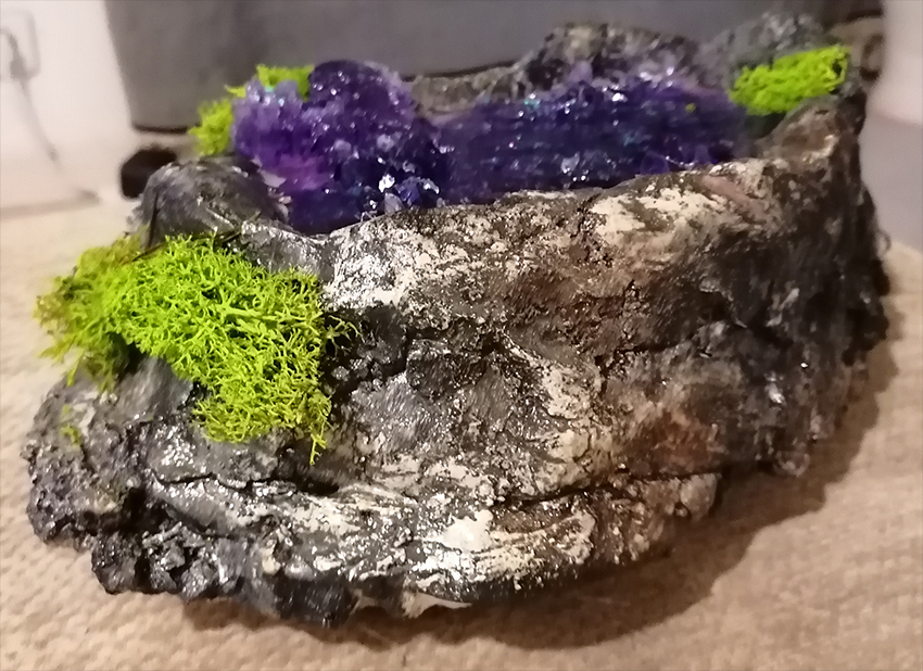 Un bloc de polystyrène est creusé au chalumeau, ce qui donnera une finition naturelle à la géode.