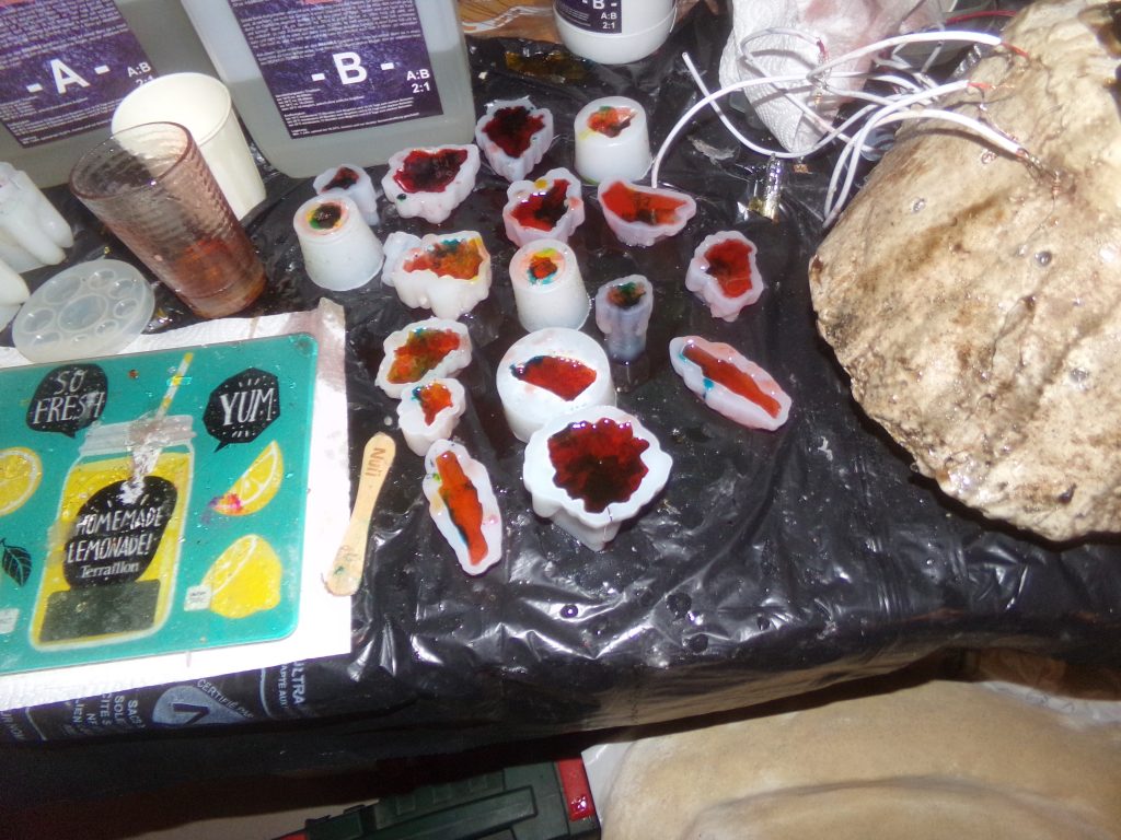 Phase 4 : Les cristaux sont creusés pour y intégrer les LEDs. Selon l’effet choisi, certaines LEDs sont moulées directement dans la résine.
