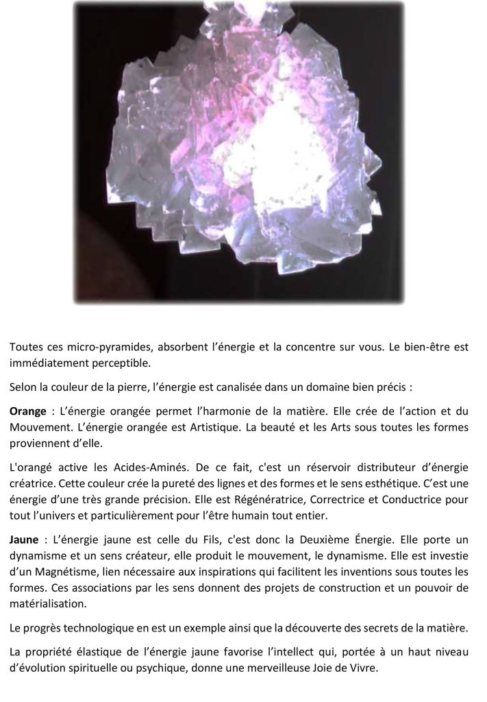Le Solénoïde ou antenne Tesla, du nom de son génial inventeur,et qui se trouve au centre du cristal capte les Ondes Scalaires et les Pyramides de nos Pierres Pyramides concentrent cette énergie des Ondes Scalaires et vous la transmet, renforçant votre propre niveau énergétique.